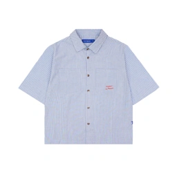 Fit: Boxy Features: Regular Collar, Button-down front, Short Sleeves, Embroidered "Museum le Fleuve" front pocket